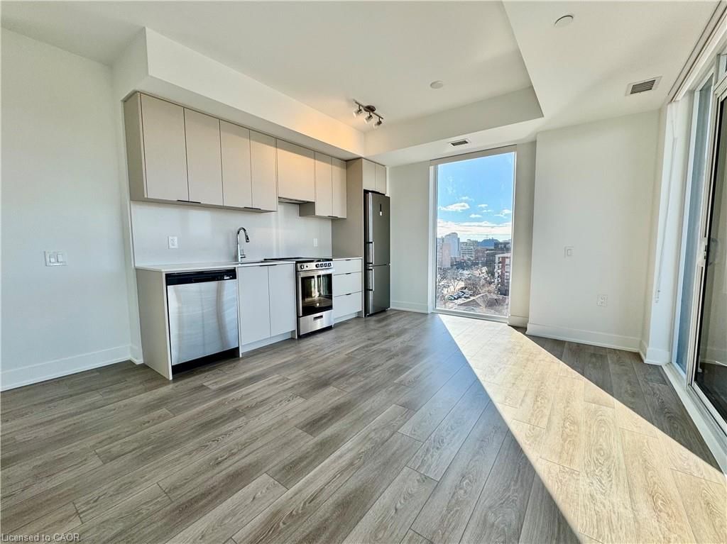 Brand New Downtown Burlington Condo with Lake Views! Welcome to Martha James Condos by Mattamy. This stunning brand new 2 bedroom, 2 bath suite provides modern living in the heart of downtown Burlington with beautiful views of downtown and Lake Ontario. Featuring 789 sq. ft. of thoughtfully designed interior space plus a 78 sq. ft. balcony, this bright unit boasts upgraded fixtures and appliances throughout. The open-concept kitchen and living area is perfect for everyday living and entertaining, with direct access to the balcony. Enjoy the convenience of in-suite laundry, a storage locker, and 1 underground parking space (#531). Residents can enjoy several common spaces including a sate of the art exercise room & yoga studio, private lounge/ party room and pet washing station. (Pet restrictions apply). Ideally located steps to restaurants, shopping, parks, transit, and schools, this is urban living at its best. A fantastic opportunity to lease a brand new condo in one of Burlington’s most sought-after developments.