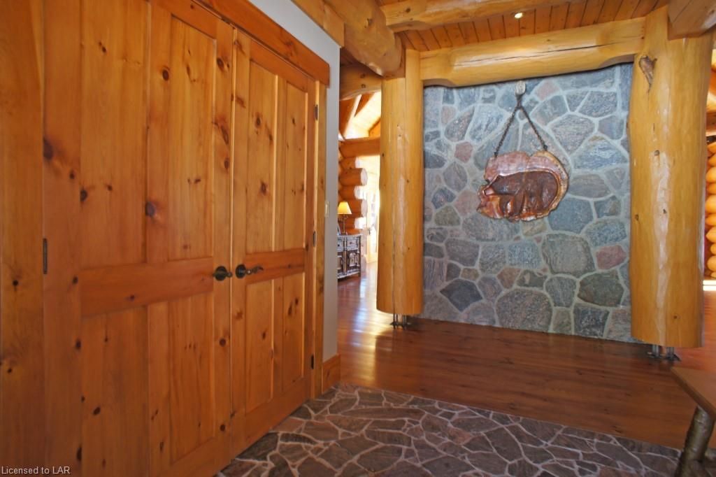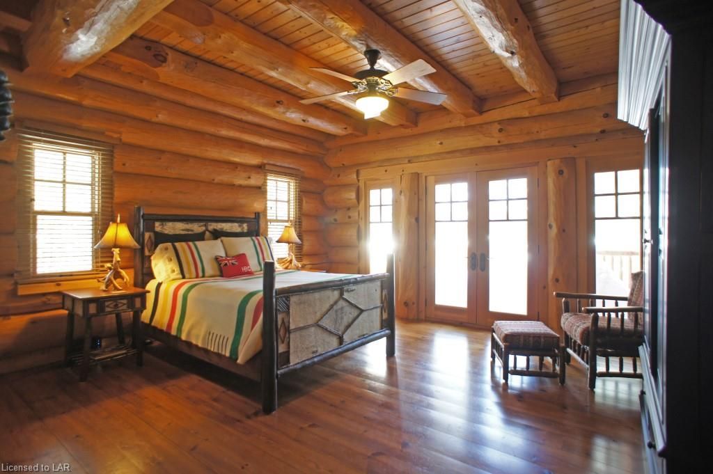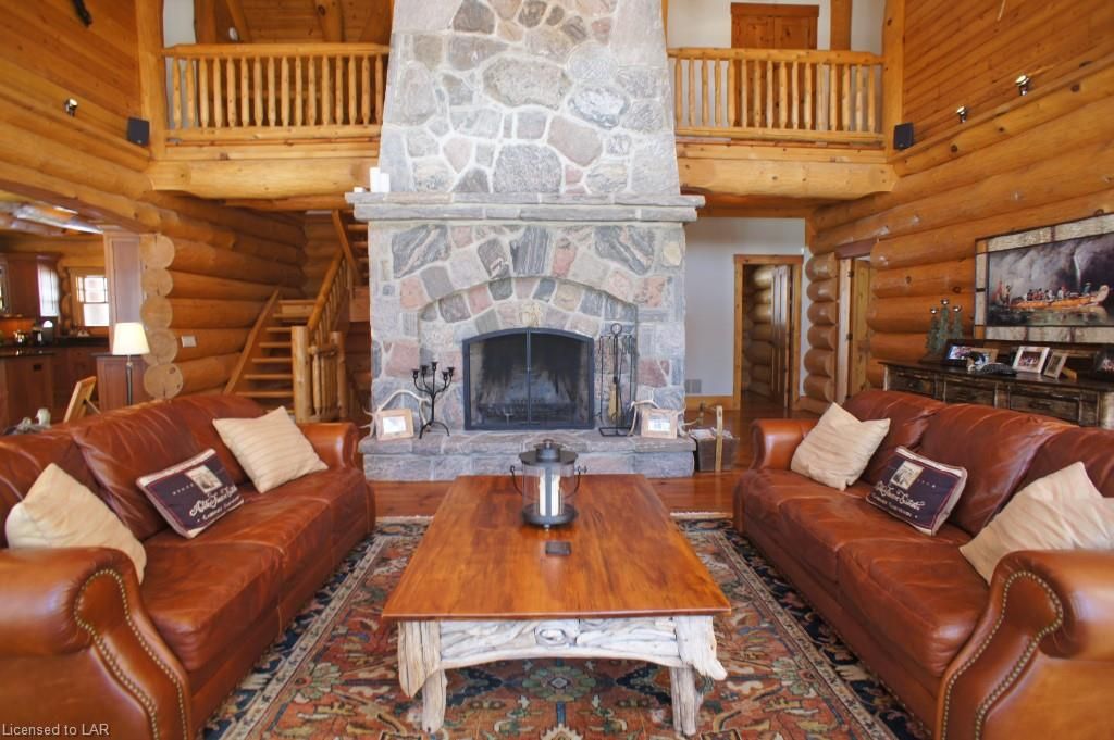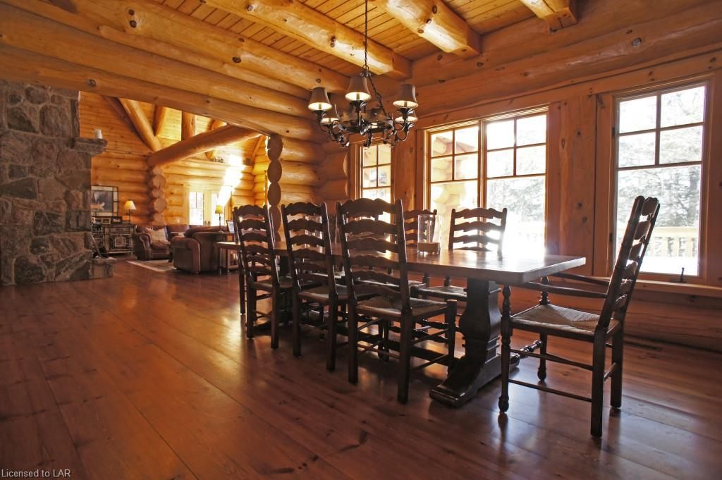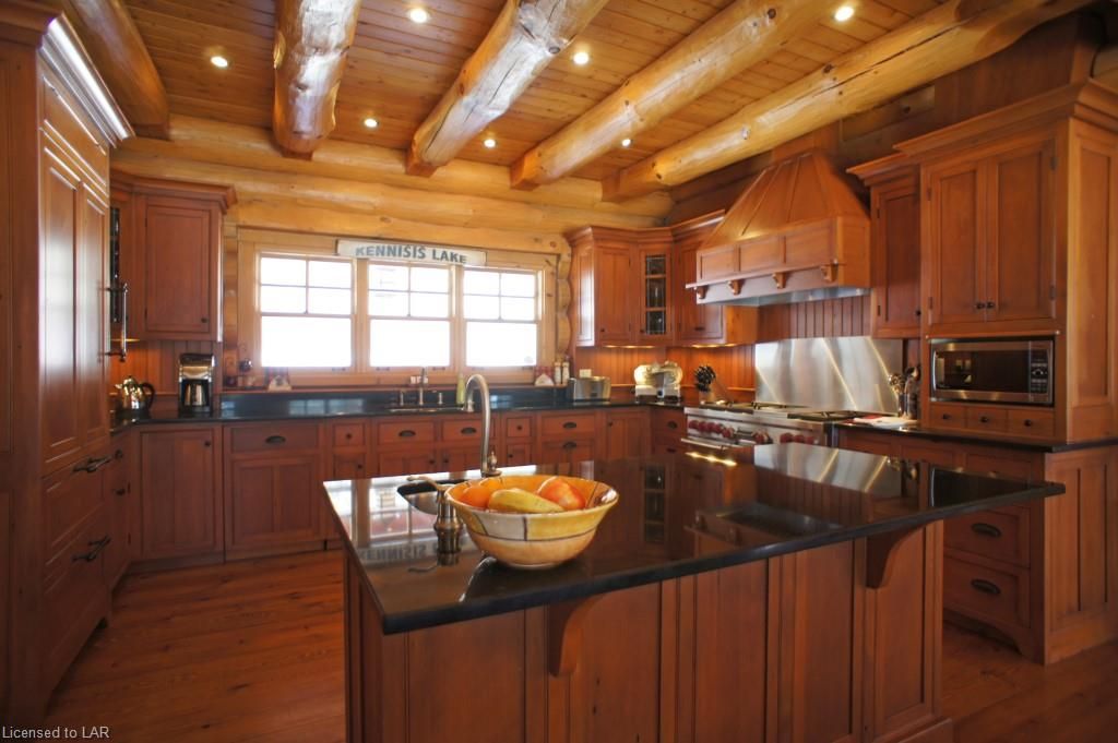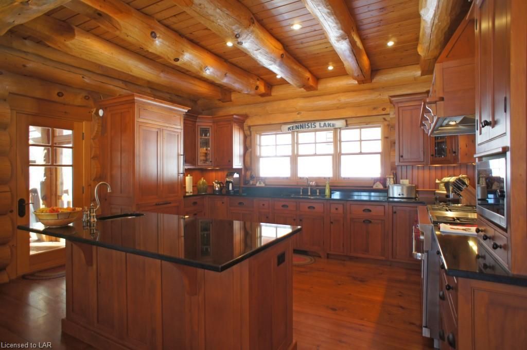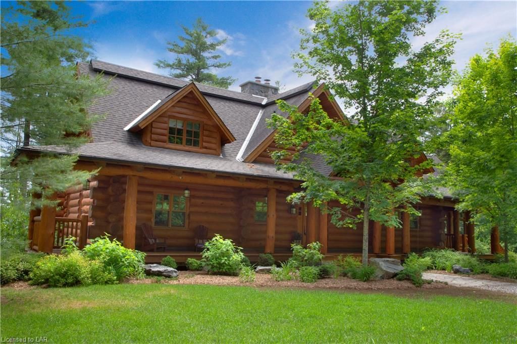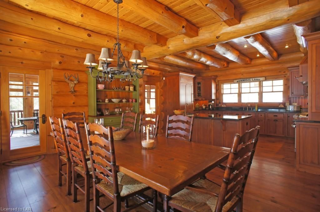 Elegance, quality craftsmanship and warm ambience in this custom Handcrafted Log home on prestigious Kennisis Lake. With an 80 ft covered porch, huge logs, tall cathedral ceilings, exposed beams & wide-plank flooring this is the log home you
