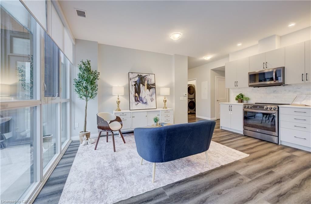 Welcome to Charlie West—where luxury meets lifestyle in the heart of downtown Kitchener. This rare 2-bedroom + den, 2-bath podium suite offers total 1,125 sq ft of bright, modern living with an oversized balcony. Floor-to-ceiling windows fill the space with natural light, highlighting sleek finishes and a thoughtfully designed open layout. The chef-inspired kitchen features granite countertops, stainless steel appliances, designer cabinetry, and ample prep space—perfect for both everyday living and entertaining. Unwind in the primary suite with direct balcony access. A second full bathroom ensures comfort for guests or family. Enjoy resort-style amenities including concierge service, fitness and yoga studios, stylish lounges, landscaped terrace with BBQs, guest suite, pet facilities, and more. Located steps from Victoria Park, ION LRT, Google HQ, and the best of downtown living—with a Walk Score of 99. Don’t miss this opportunity to own in one of Kitchener’s most sought-after buildings.