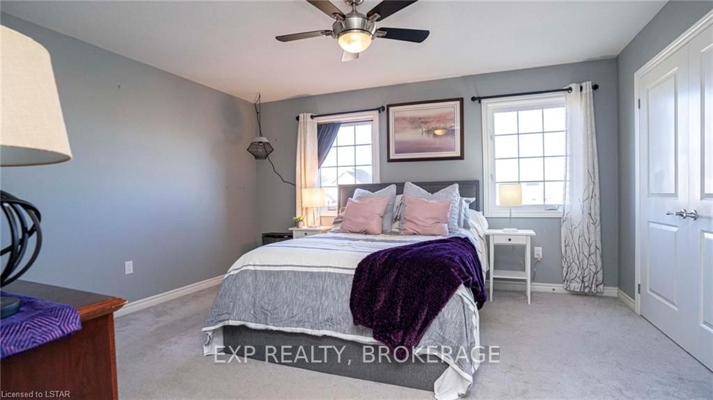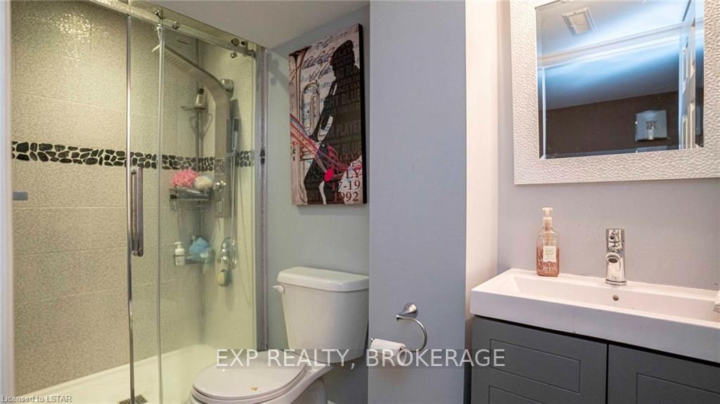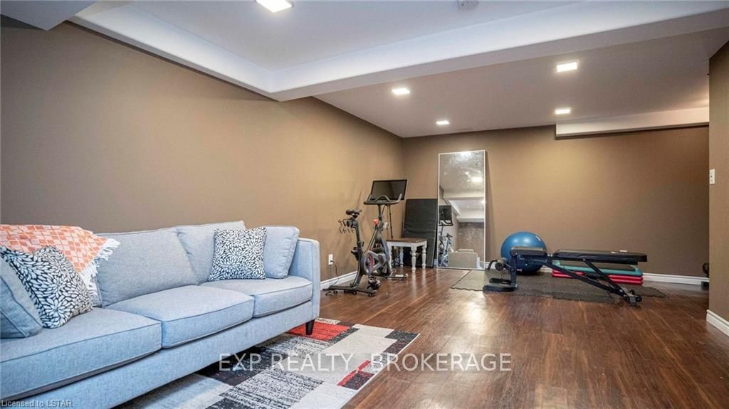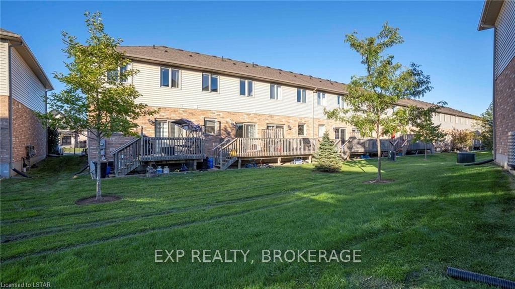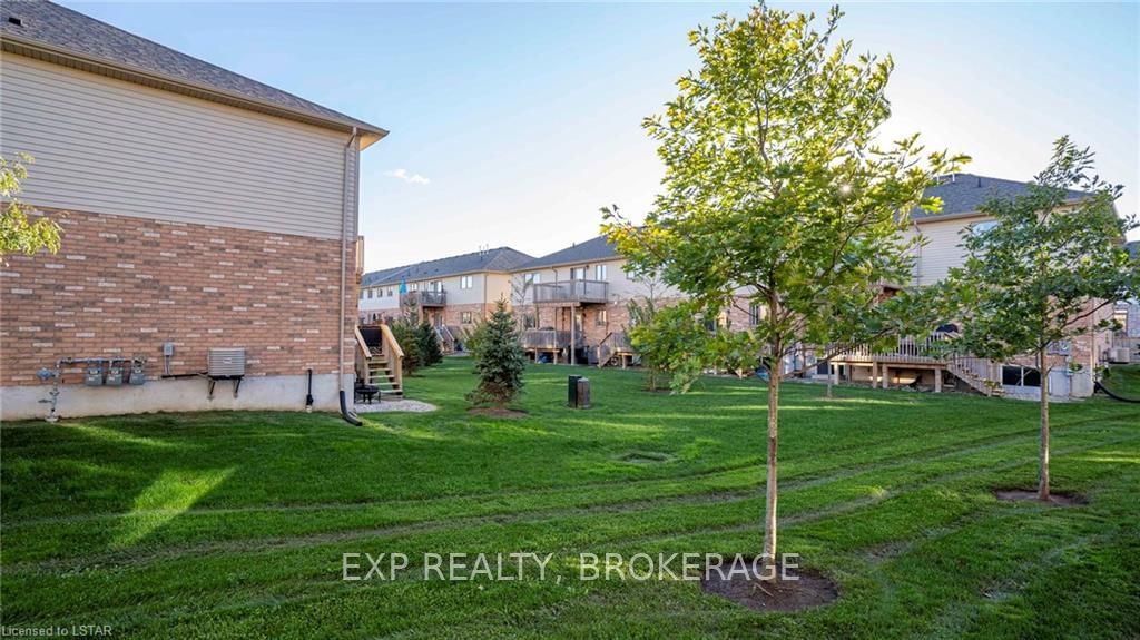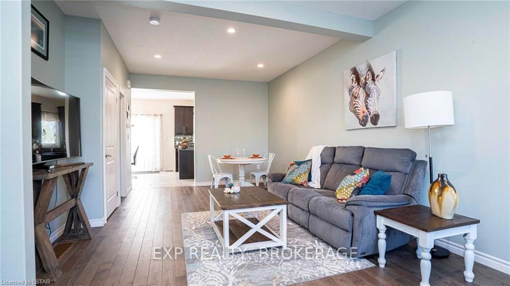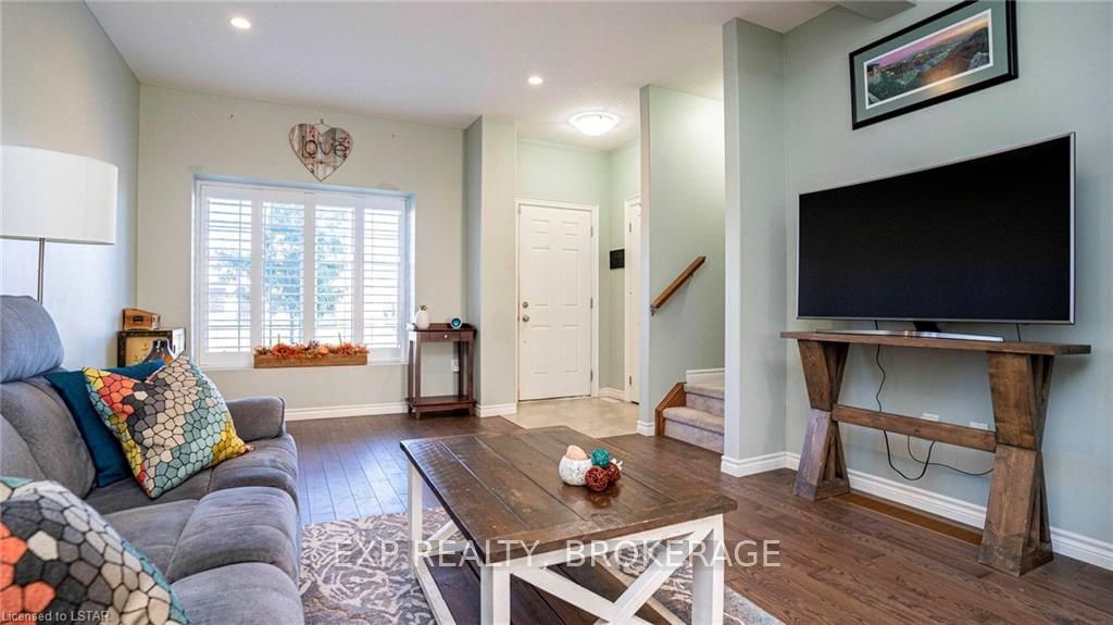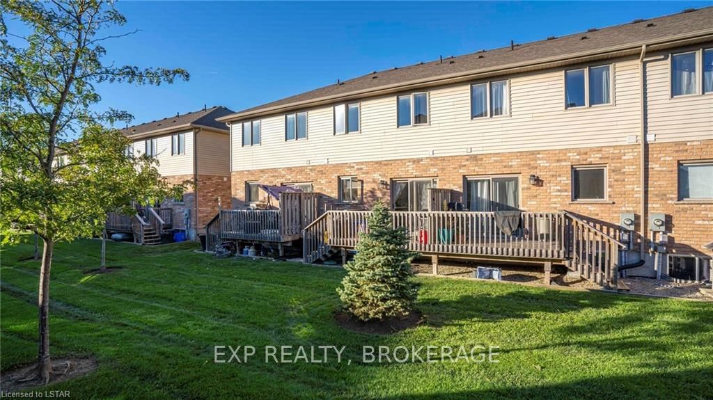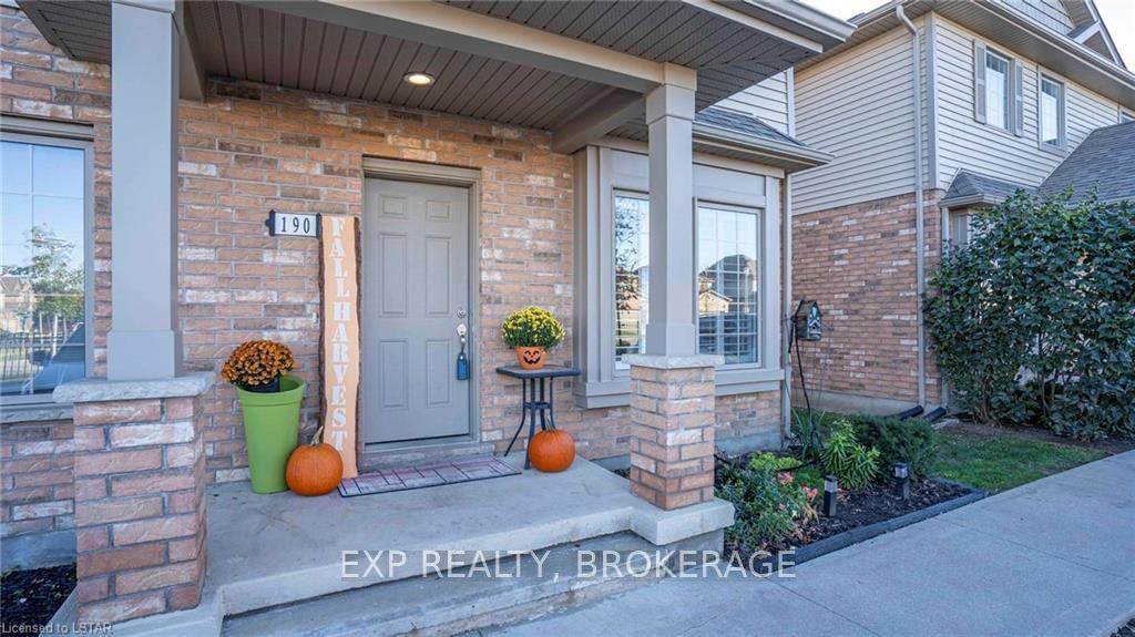 Welcome to 190-3320 Meadowgate Boulevard! This tastefully finished condo in London's Summerside community has everything you need. Step into the welcoming and bright, open concept Great Room with soaring ceilings and pot lights, spacious enough to accommodate a living room and dining area. Walk through to the eat-in kitchen that features stainless steel appliances, including a double-oven range, and a custom-made wall-to-wall pantry. A 2-piece powder room is also conveniently located on the main floor. Take the wide staircase to the second floor, which includes a spacious master bedroom with cheater-ensuite access into an immaculate 4-piece bathroom. Two additional bedrooms with large and airy windows, along with a stackable laundry closet, complete the upstairs level. The fully finished basement includes vinyl hardwood flooring, a 3-piece bathroom, and a bonus room with an extra large window. This end unit also boasts rounded wall corners throughout and has its own private porch entr