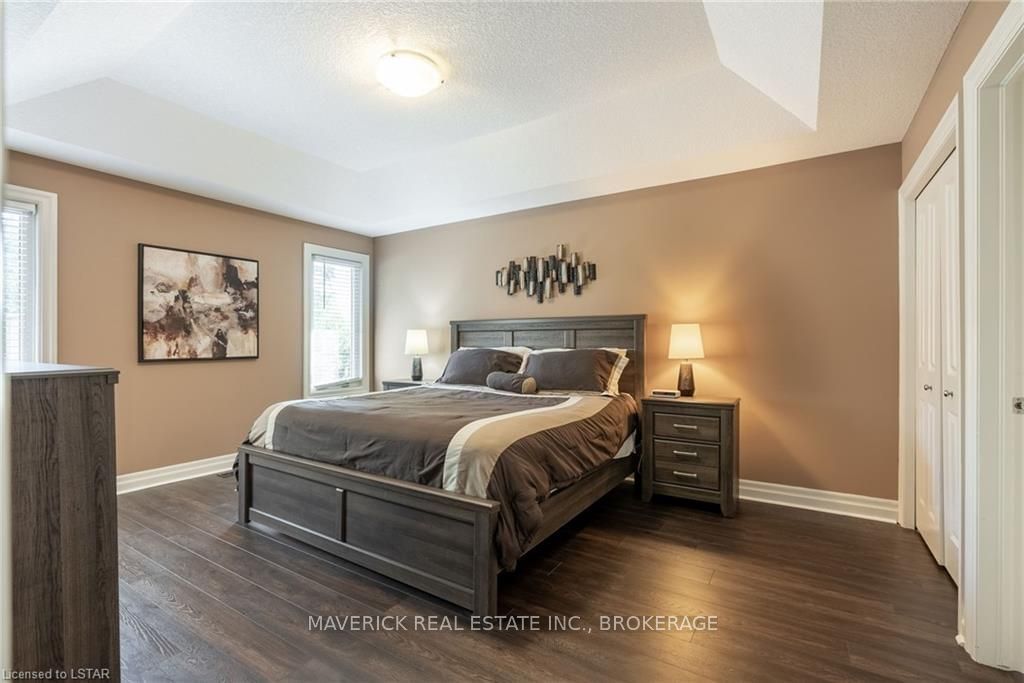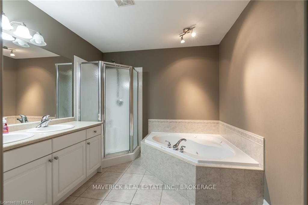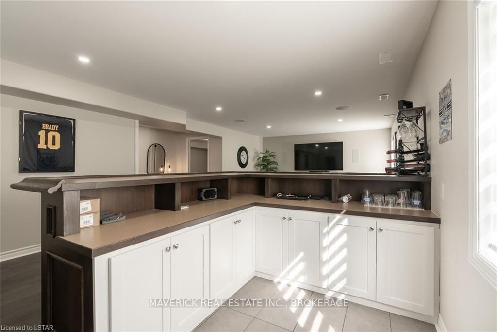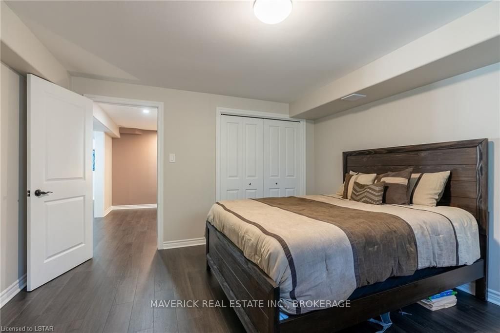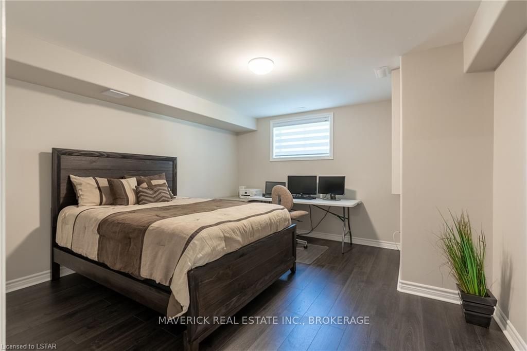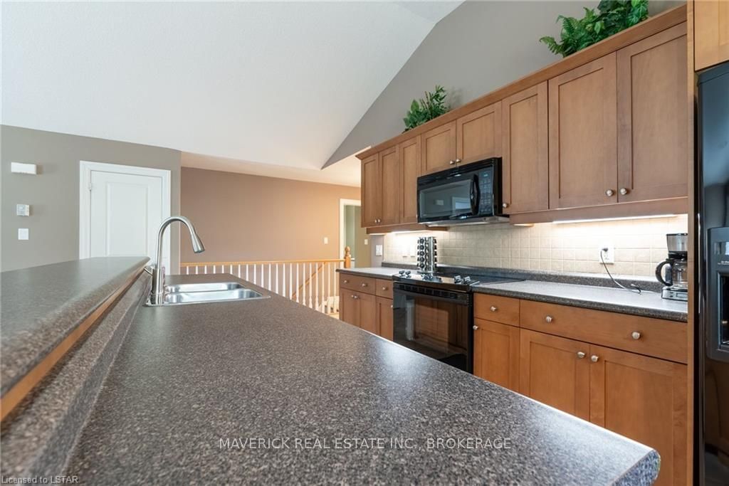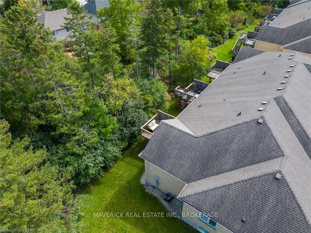 48 HR ESCAPE CLAUSE- Introducing a stunning gem nestled in a quiet community, this solid brick one-floor condominium offers the perfect blend of comfort and style. With nearly 1,500 sq ft of above grade living space PLUS a finished basement , this end unit provides a sense of privacy and tranquility. As you step inside, you'll be greeted by a wide open concept design and vaulted ceiling that seamlessly connects the kitchen, dining area, and living room. The spacious kitchen features a breakfast island, ideal for casual dining, while overlooking the inviting living room, complete with a cozy gas fireplace and seven mounted speakers for an immersive surround sound experience. The main floor also boasts a dedicated dining area, perfect for entertaining guests. For those seeking outdoor relaxation, you'll love the access to the elevated fully enclosed deck, offering ultimate privacy and a serene view of the tree-lined back fence. This home has undergone recent upgrades, with all carpets on the main floor replaced with laminate flooring, providing a modern and low-maintenance touch. The main floor features two generously sized bedrooms, including a large primary bedroom with a walk-in closet and a luxurious 5-piece ensuite bathroom. The convenience of main floor laundry is also found in the common 4 pc bathroom. The basement of this home has been professionally finished in 2021, featuring recessed LED pot lights and a custom cherry bar with an additional separate wet bar, perfect for hosting gatherings or enjoying a relaxing evening. An additional bedroom with a closet offers flexibility and extra space as well. The basement also showcases large 4ft x4ft windows that welcome loads of natural light and provide beautiful views of the green space behind, creating a peaceful ambiance. Four built-in speakers complete the basement's impressive features. If one floor living in a quiet, peaceful neighbourhood in the West end of London is what you are looking for, this is it!