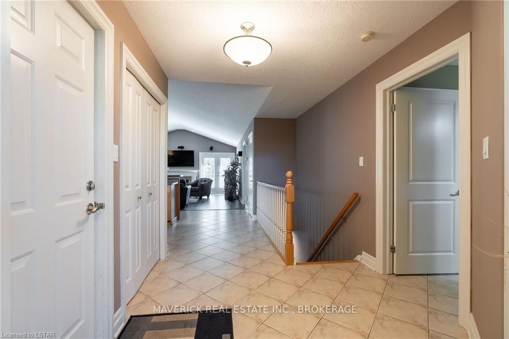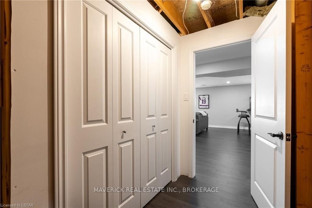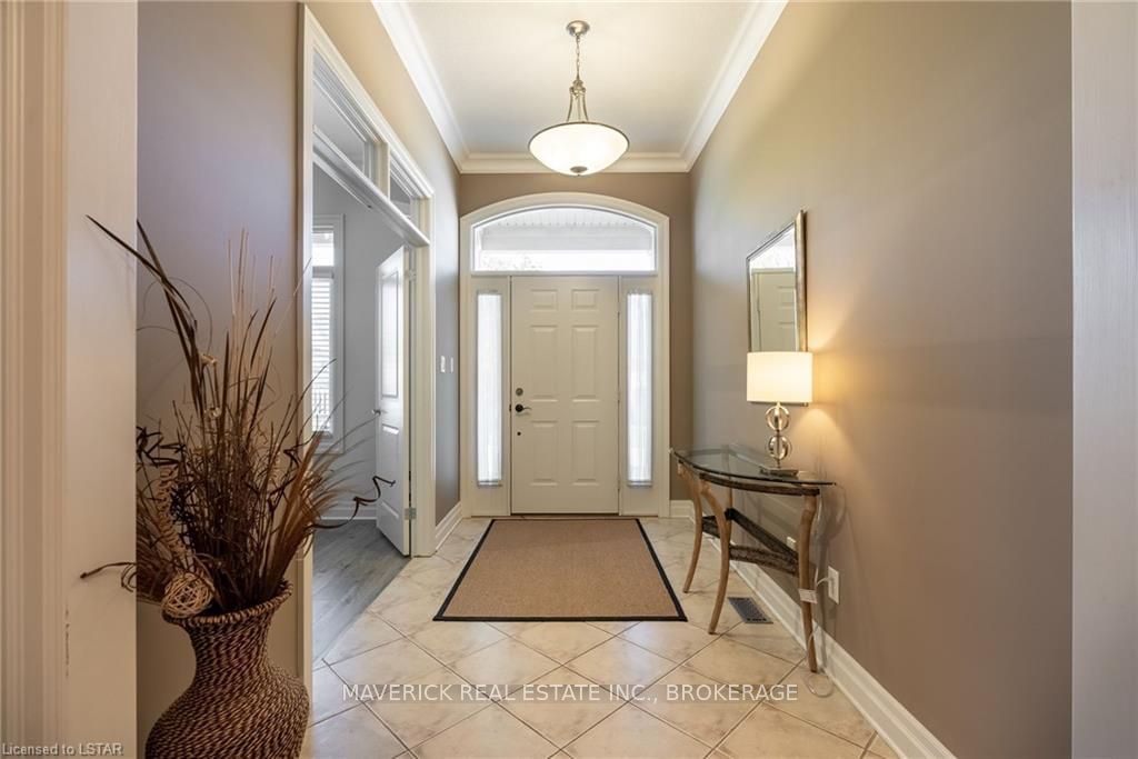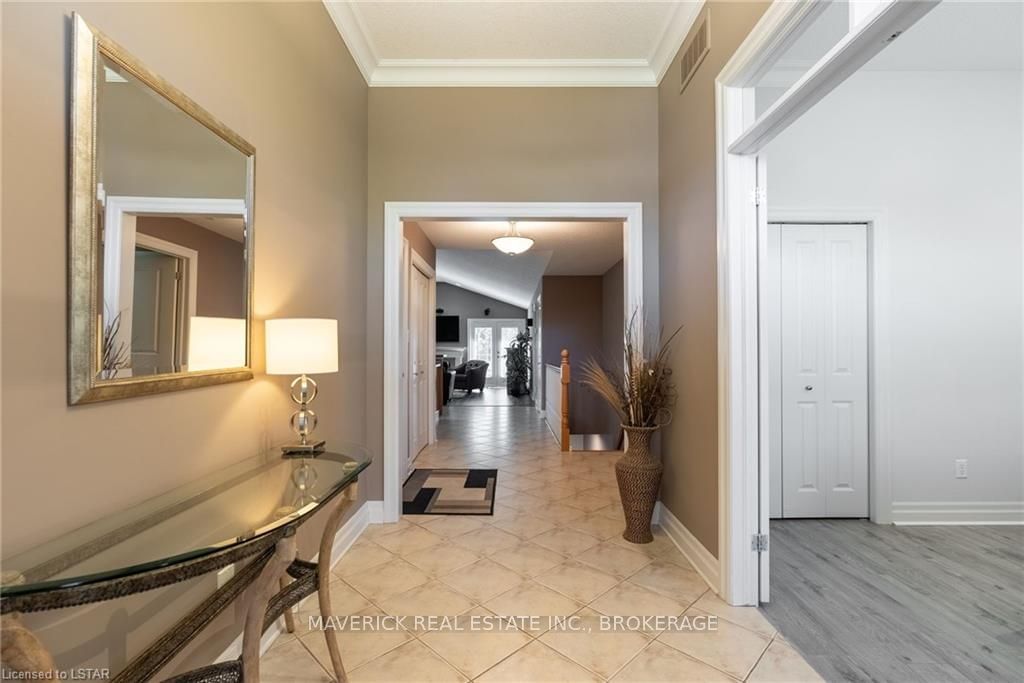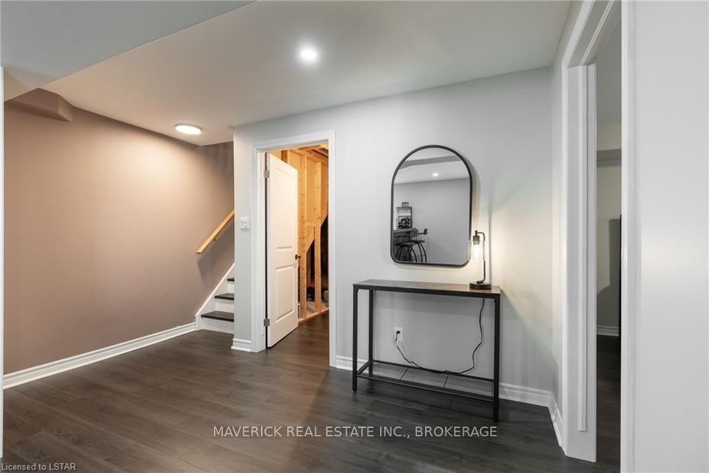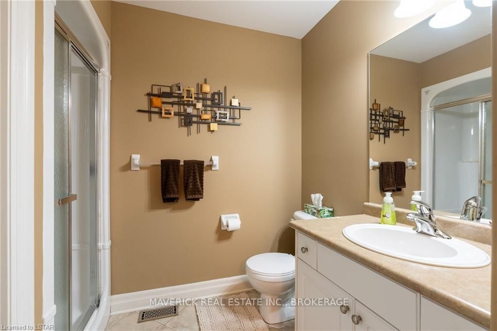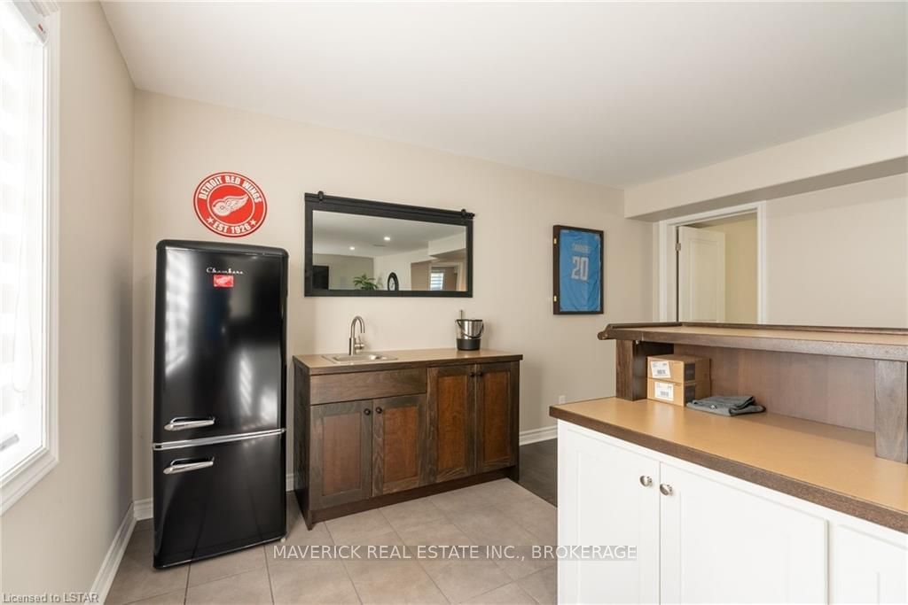 48 HR ESCAPE CLAUSE- Introducing a stunning gem nestled in a quiet community, this solid brick one-floor condominium offers the perfect blend of comfort and style. With nearly 1,500 sq ft of above grade living space PLUS a finished basement , this end unit provides a sense of privacy and tranquility. As you step inside, you'll be greeted by a wide open concept design and vaulted ceiling that seamlessly connects the kitchen, dining area, and living room. The spacious kitchen features a breakfast island, ideal for casual dining, while overlooking the inviting living room, complete with a cozy gas fireplace and seven mounted speakers for an immersive surround sound experience. The main floor also boasts a dedicated dining area, perfect for entertaining guests. For those seeking outdoor relaxation, you'll love the access to the elevated fully enclosed deck, offering ultimate privacy and a serene view of the tree-lined back fence. This home has undergone recent upgrades, with all carpets on the main floor replaced with laminate flooring, providing a modern and low-maintenance touch. The main floor features two generously sized bedrooms, including a large primary bedroom with a walk-in closet and a luxurious 5-piece ensuite bathroom. The convenience of main floor laundry is also found in the common 4 pc bathroom. The basement of this home has been professionally finished in 2021, featuring recessed LED pot lights and a custom cherry bar with an additional separate wet bar, perfect for hosting gatherings or enjoying a relaxing evening. An additional bedroom with a closet offers flexibility and extra space as well. The basement also showcases large 4ft x4ft windows that welcome loads of natural light and provide beautiful views of the green space behind, creating a peaceful ambiance. Four built-in speakers complete the basement's impressive features. If one floor living in a quiet, peaceful neighbourhood in the West end of London is what you are looking for, this is it!