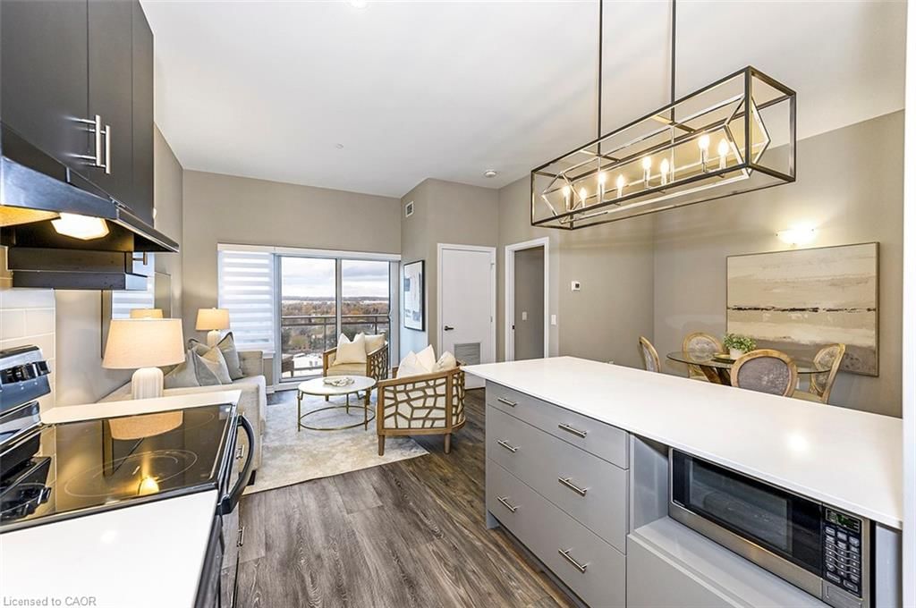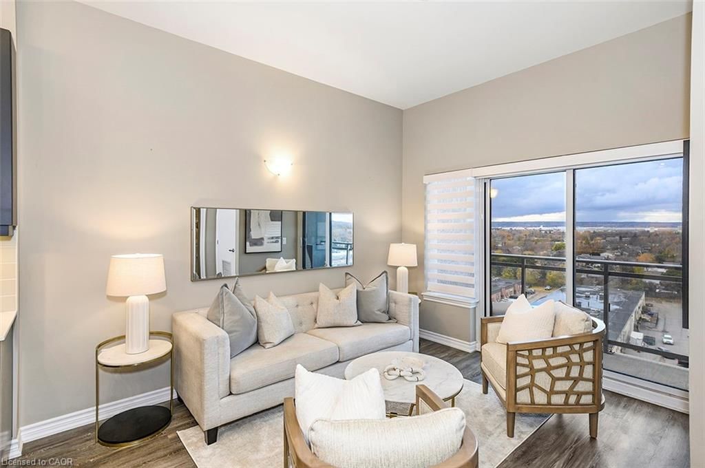 Welcome to this stunning penthouse suite where luxury, light, and lifestyle come together. This sun-filled 2-bedroom, 2-bathroom condo features 960 square feet of beautifully finished living space, soaring 10-ft ceilings, remote Hunter Douglas blinds, and a spacious entryway that sets the tone the moment you walk in. Take in unobstructed escarpment and sunset views from the open-concept living and dining area, perfect for relaxing or entertaining. The large primary bedroom offers a generous closet and a stylish ensuite with a glass shower, while the second bedroom is equally spacious and ideal for guests, a home office, or family. A modern 3-piece bathroom and ample in-suite storage round out the thoughtful layout. Residents enjoy top-tier building amenities, including a rooftop deck, guest suites, party room, exercise room, and visitor parking. With its convenient location you’re just steps from shops, dining, parks, and the Milton GO Station making commuting effortless. A rare penthouse offering the perfect blend of comfort, style, and convenience.