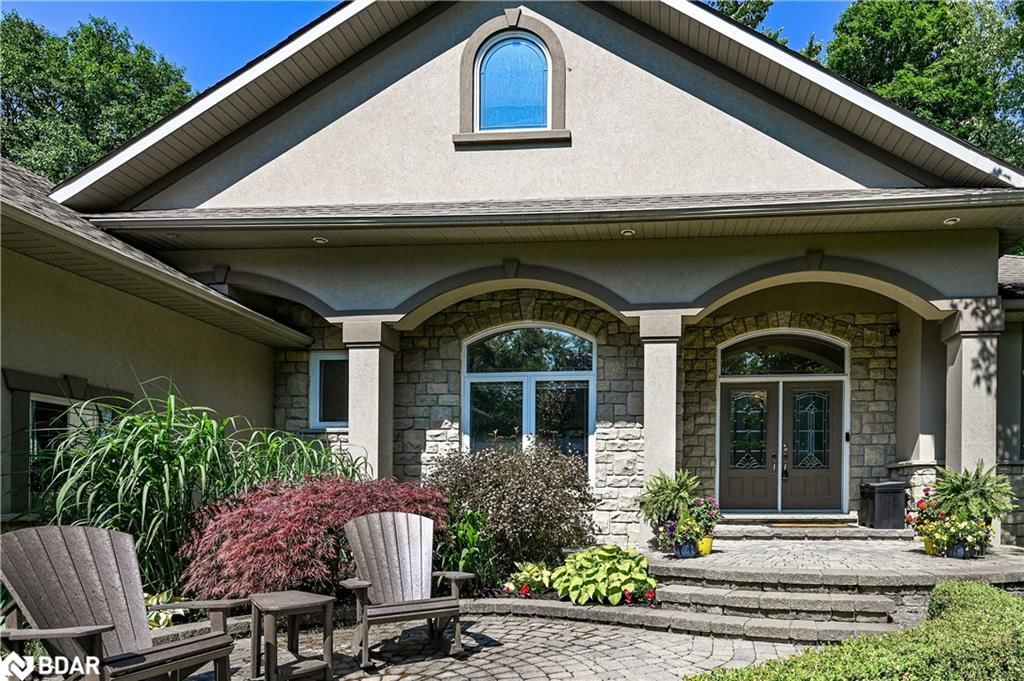 Stunning custom built 5 Bed rm, 4 bath home in desirable Anten Mills. This executive bungalow features open concept main floor great room with stone fireplace, hardwood floors, ceramic tiles, 9' ceilings and grand chef style custom kitchen with huge centre island and granite counters. Main floor primary suite boasts a 6 pc ensuite, lrg walk-in closet and private balcony overlooking a backyard oasis. Completely finished basement has 3 additional bedrms, family rm, 2 bath rms, an exercise rm and a bar overlooking entertainment area. Professionally landscaped backyard boasts stunning inground pool with waterfall, interlock patio, inground sprinkler system, built in surround sound system,perennial gardens, hot tub and cabana with bar and change rm. New heat pump and natural gas furnace installed 2023, 3 bay garage with heated floors. Ample parking space for RV and toys. Simcoe Forest trails at your door, 15 min to Snow Valley/Moonstone Skiing. Basement entrance from garage. IN-LAW SUITE POTENTIAL!